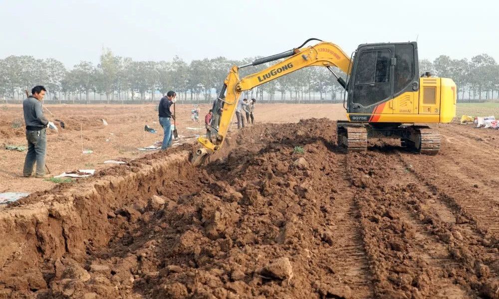 使用挖掘機幫忙挖山藥,這既節約了時間,又保證了山藥的完整性。