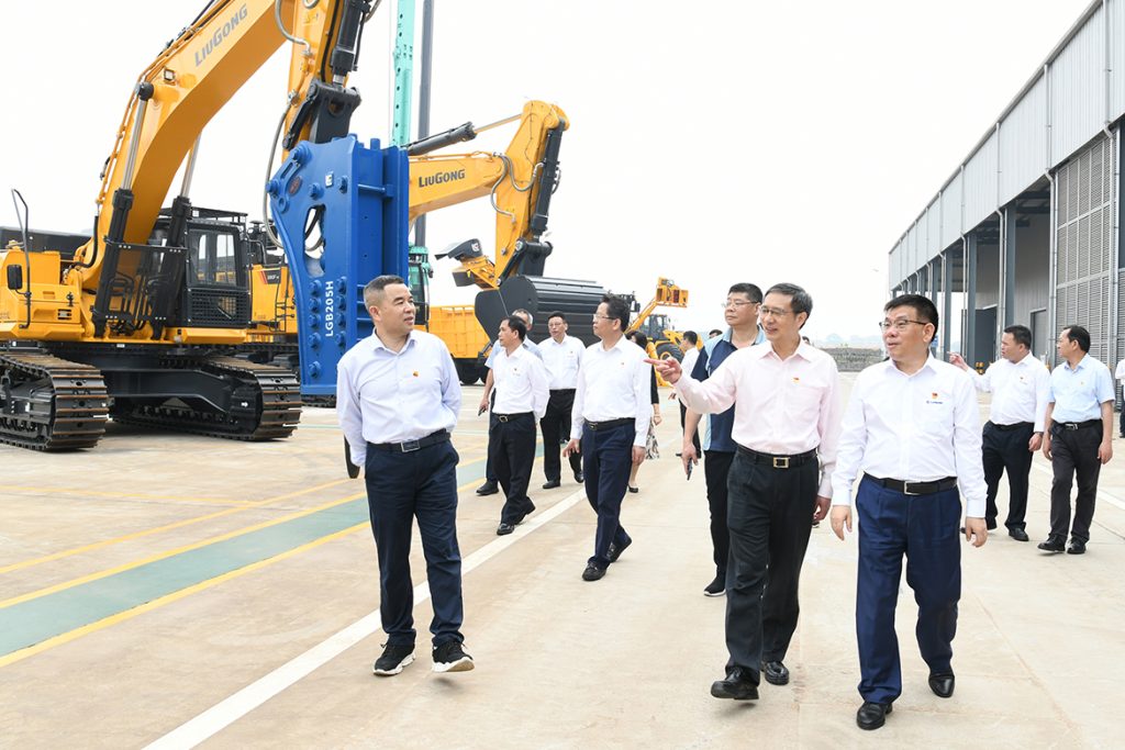 5月6日上午,“五一”假期后第一天,自治區(qū)國資委黨委書記、主任李杰云率國資委領(lǐng)導(dǎo)班子和廳級干部,以及駐柳自治區(qū)直屬企業(yè)黨委書記來到柳工,沿著習(xí)近平總書記4月26日在柳工考察時的路線,實地領(lǐng)悟習(xí)近平總書記視察柳工時的重要講話和指示精神,召開黨史學(xué)習(xí)教育第二次專題學(xué)習(xí),廣西柳工集團機械有限公司,廣西柳工機械股份有限公司黨委書記、董事長曾光安作全程講解介紹。