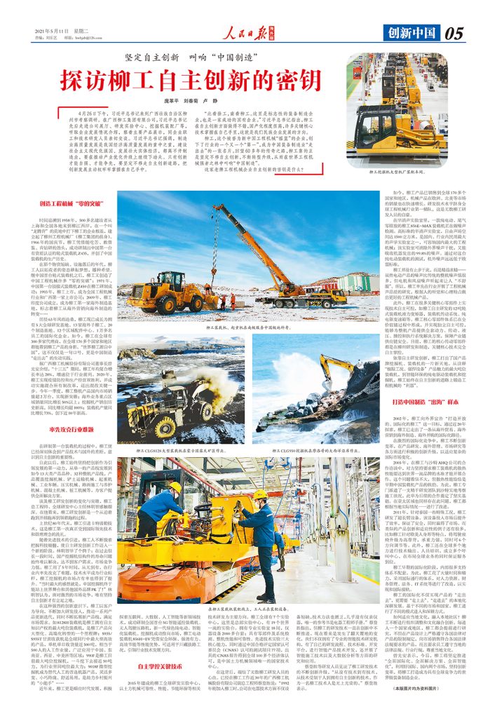 5月11日,《人民日報》海外版刊登柳工專版,探索柳工如何堅定自主創新,叫響“中國制造”品牌口號。