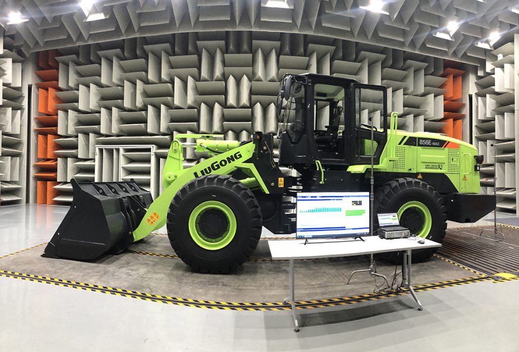 856E-MAX電動裝載機在柳工半消聲實驗室進行測試