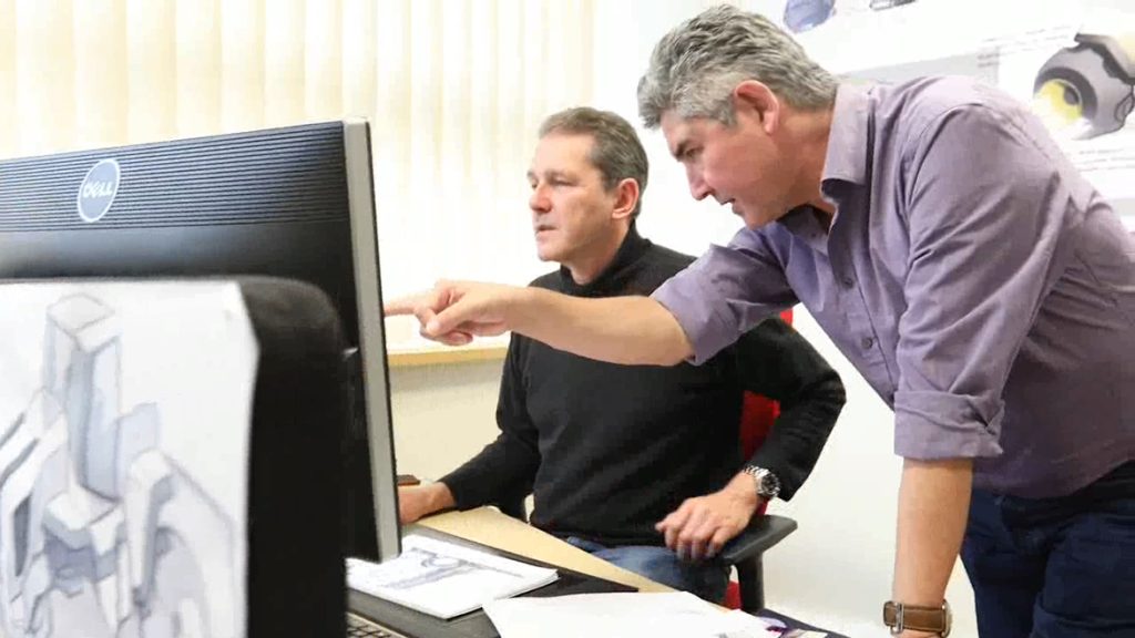 加入柳工后,蓋里在工業設計領域大展拳腳。為解決工程師無法初步查看設備外觀效果的問題,蓋里提出了“虛擬樣機”的解決方案,即通過專業設計建模軟件,工業設計師可較短時間內在電腦中建造虛擬樣機,用來進行初步的外觀評審,還能依據新的設計實時修改虛擬樣機,省時省力。