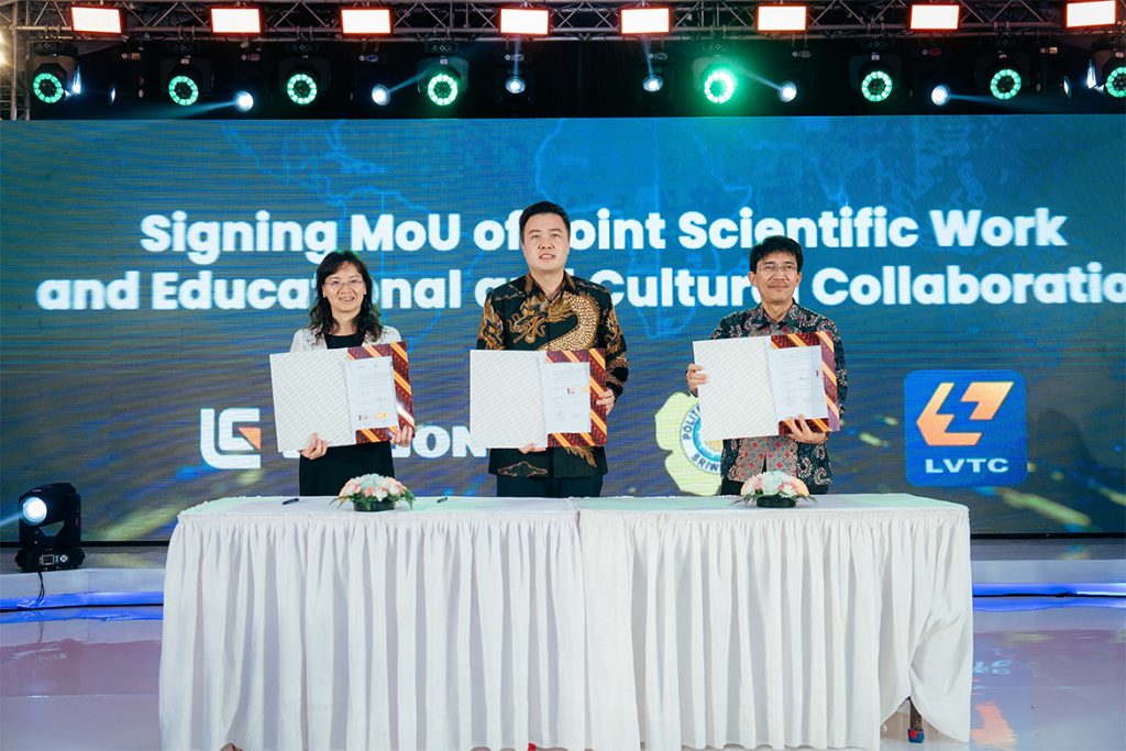 客戶節現場,柳工印尼公司與柳職院、印尼斯里維加亞理工學院舉行校企合作項目簽約儀式,啟動柳工在印尼的第二所柳工-柳職院國際工匠學院建設。這是柳工深化產教融合,共育技能人才的又一舉措。