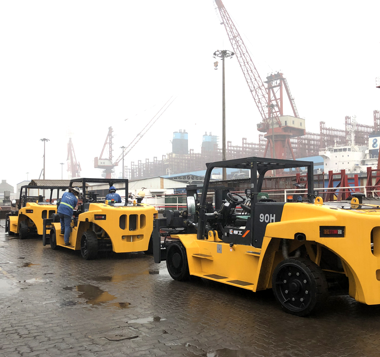 3月30日,春雨瀝瀝除疫霾,柳工叉車舉辦了一場簡單而不失隆重的發車儀式,大批量大型船塢專用叉車發往廣東某客戶手中。其中9噸緊湊版船塢專用叉車為新款產品,具有高效舒適、高承載力、安全可靠等特點,應用于船艙、涵道和地下室等低矮空間,穿梭自如。